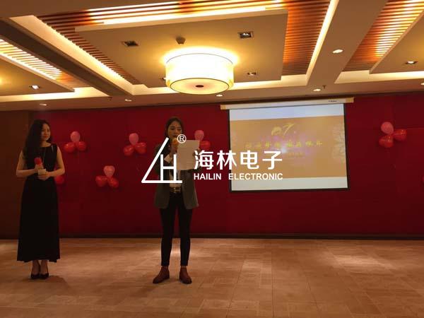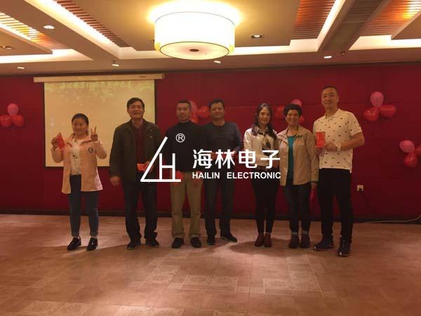 首先是我們的周宏英總經(jīng)理為我們致詞,周總經(jīng)理表達(dá)了對(duì)海林電子的寄望及對(duì)鼓舞,邢瑞林董事長(zhǎng)隨后為大家送上祝福:2016年全體員工共同努力,圓滿完成公司的各項(xiàng)公司目標(biāo),祝大家合家歡樂,身體健康,萬事如意。