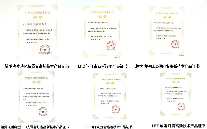 LED相關(guān)榮譽資質(zhì)