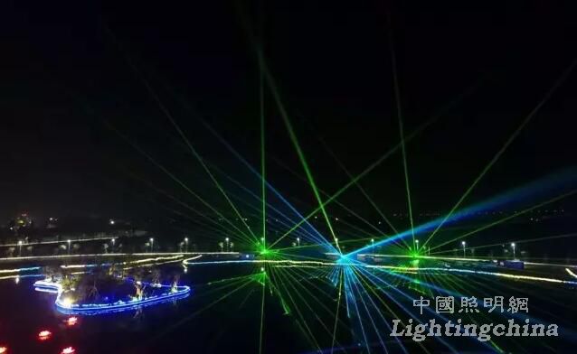 當(dāng)一陣音樂響起,3D投影技術(shù)將影象打到湖里的大菊花上面,聽著音樂看著燈光秀,心情澎湃。