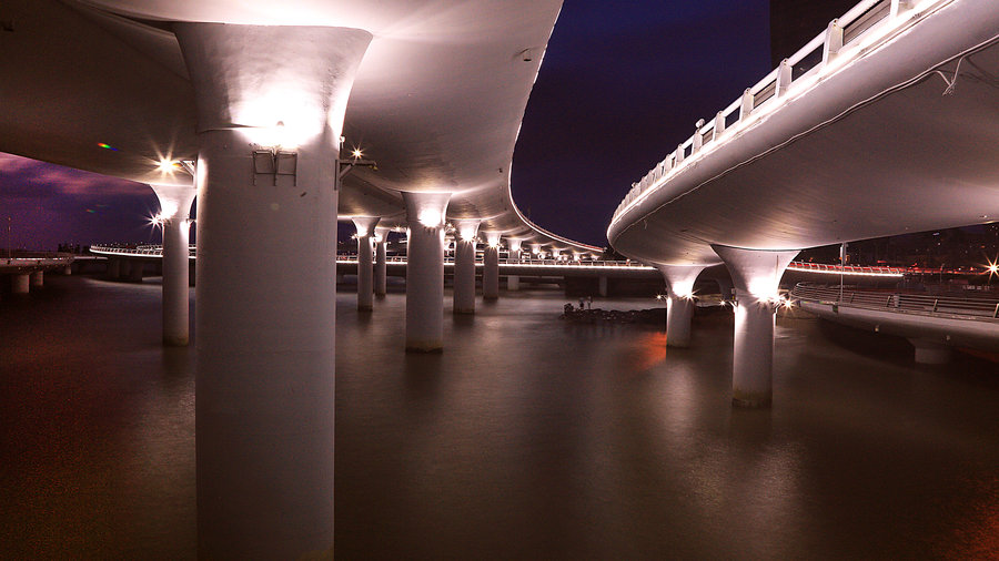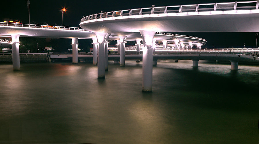 )位于廈門(mén)環(huán)島路海軍碼頭-演武路-白城段,全長(zhǎng)2.2公里,由主橋體、成功大道互通立交、演武互通立交和白城互通立交組成。橋梁建設(shè)總投資5.6億元,于2003年9月通車(chē)。在結(jié)構(gòu)上采取了魚(yú)腹式梁,橢圓型墩,橋身通體漆為白色。
