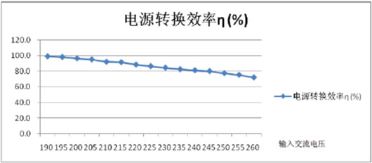 由圖中可以看到,當(dāng)環(huán)境溫度從35度升高到85度時(shí),整個(gè)效率隨輸入電壓變化曲線幾乎完全一樣,始終保持在98%以上(包括了整流器的效率在內(nèi))。